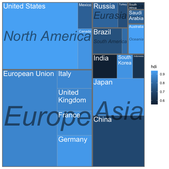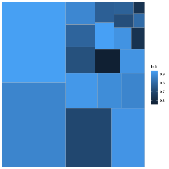 to its HDI (Human Development Index). geom_treemap() is the