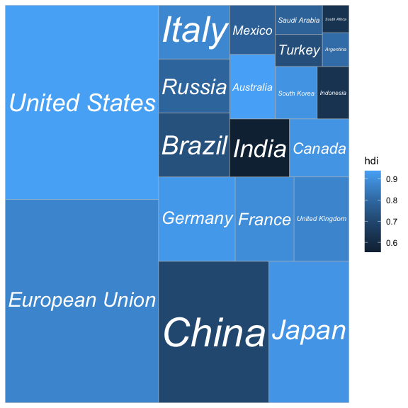 ggplot(G20, aes(area = gdp_mil_usd, fill = hdi, label = country,