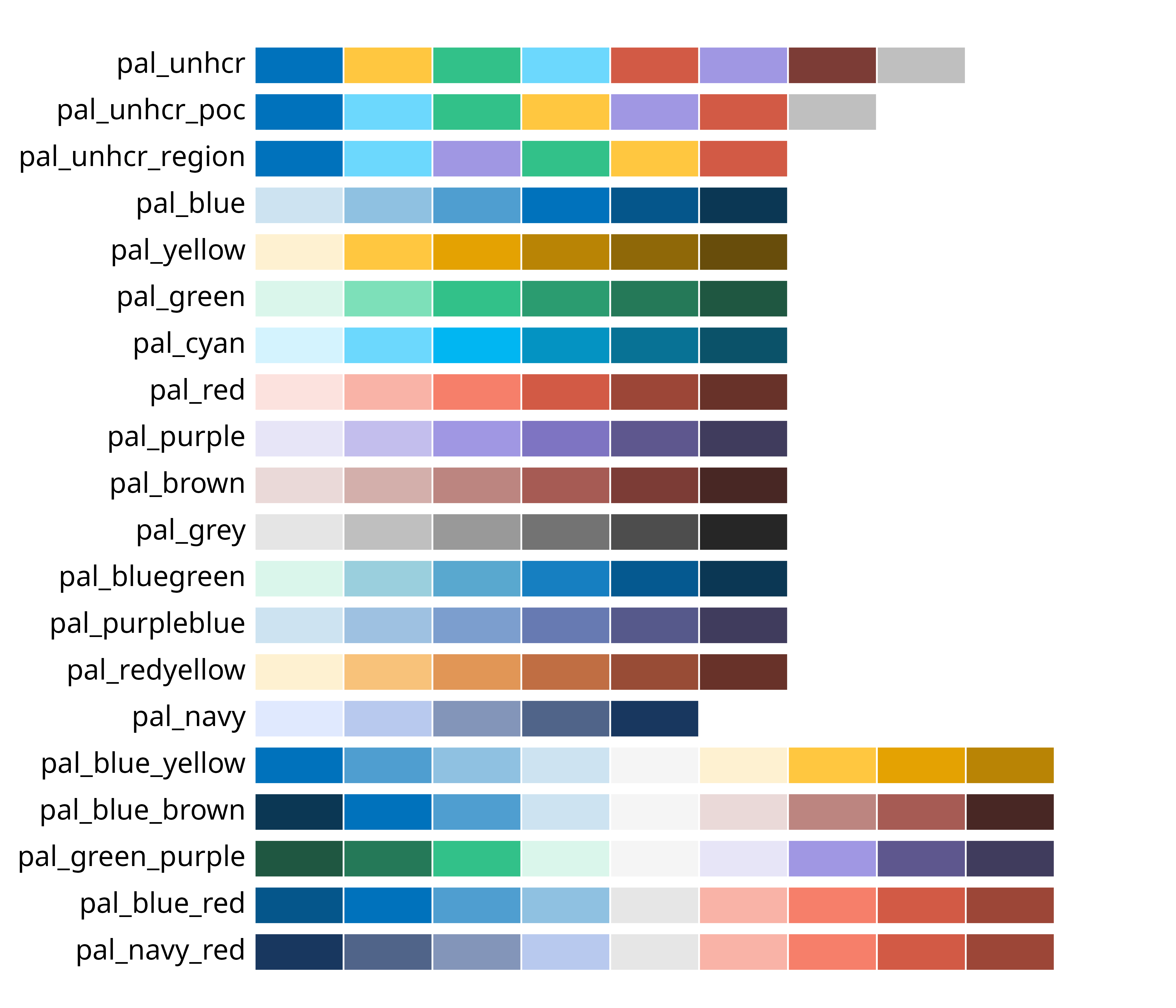 # Display all unhcr color palette