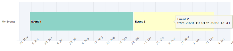 #> 1 Event 1 2020-06-06 2020-10-01 My Events from <b>2020-06-06</b> to <b>2020-10-01</b> #8DD3C7 1 1