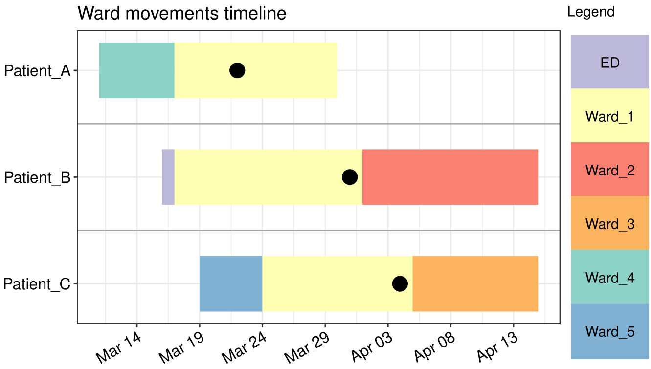 gg_vistime() for visualizing patient ward movements as